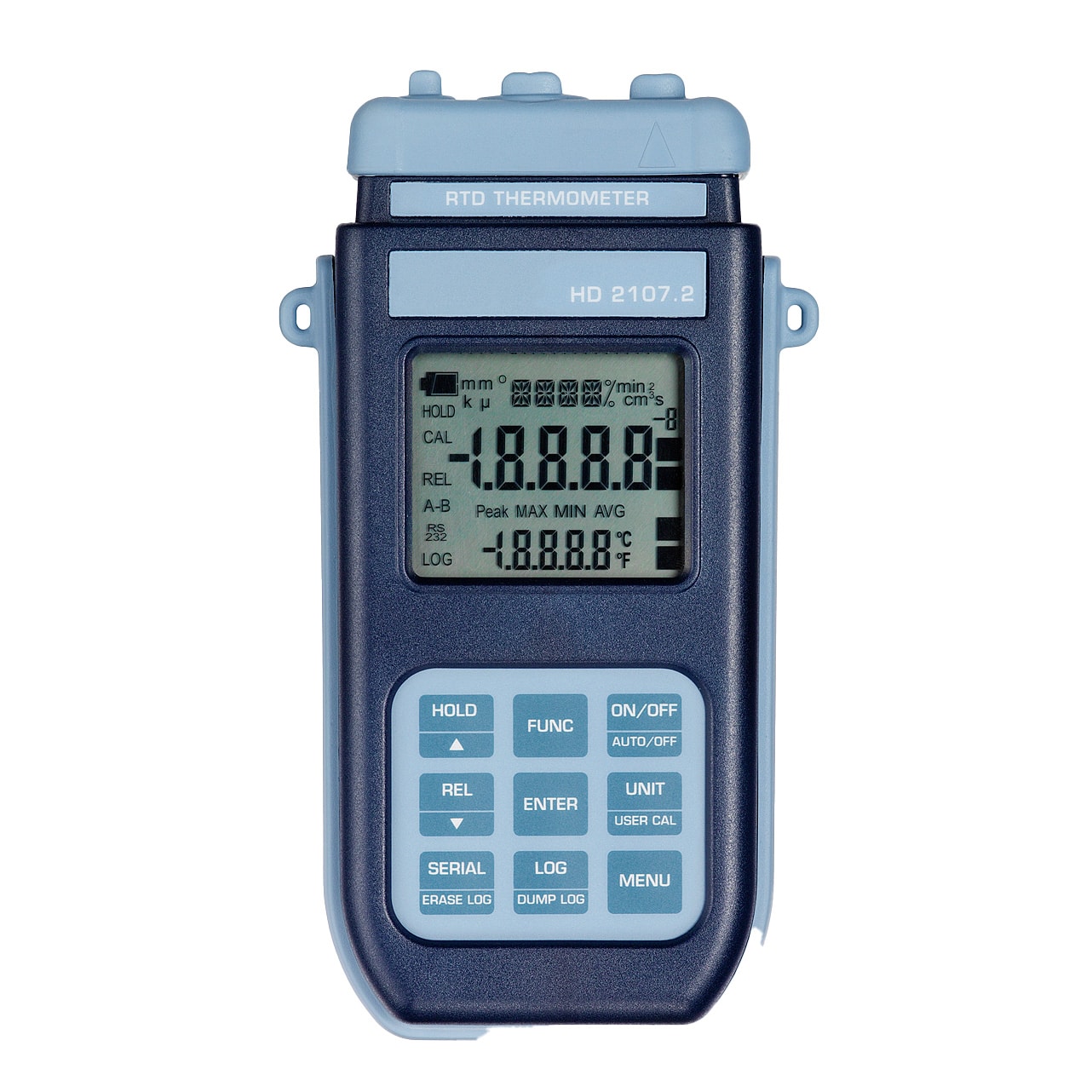 Termometro centesimale fra +/-199,99°C, decimale fino a fine scala, sensore Pt100 ad un ingresso per sonde con modulo SICRAM, campo di misura –200°C …+650°C.